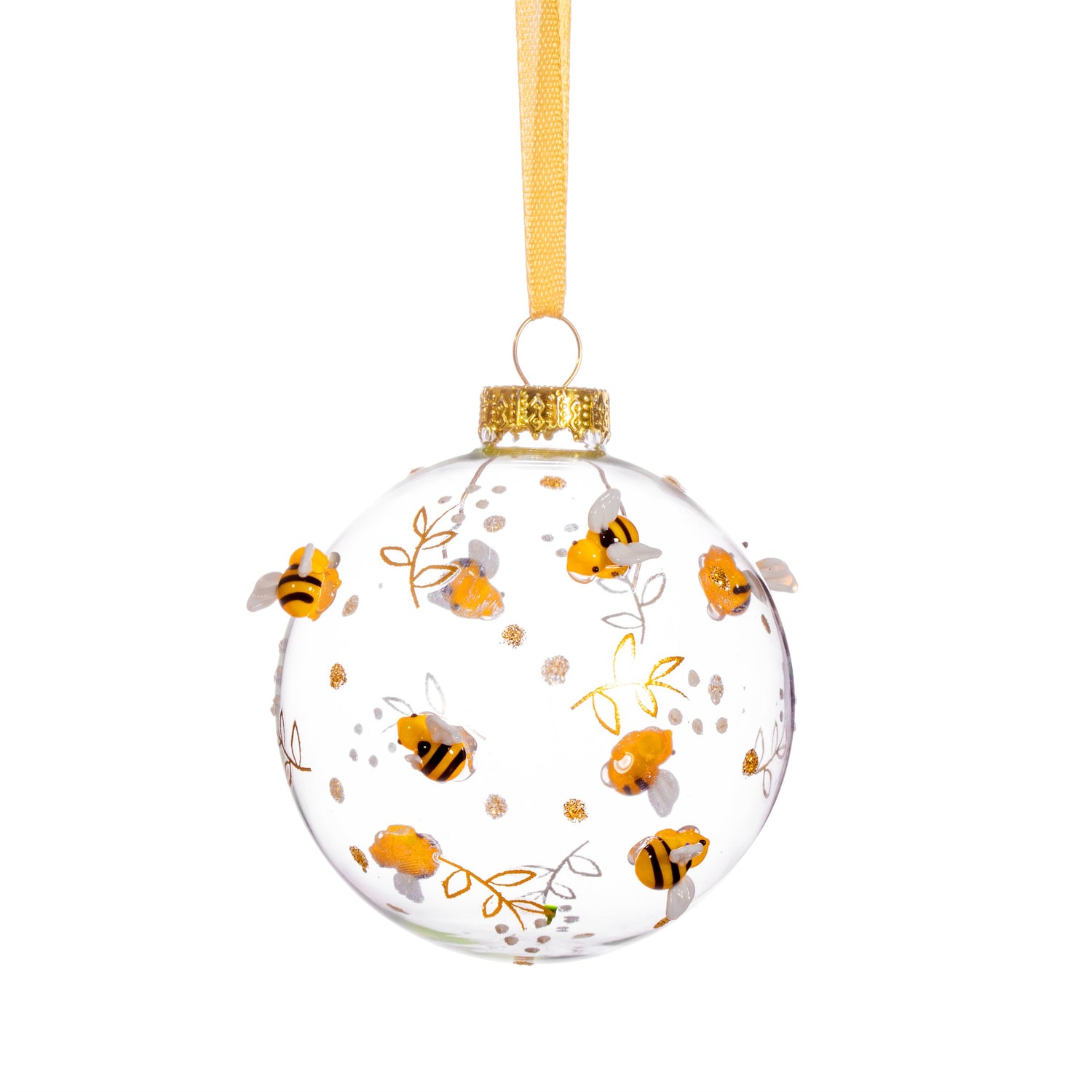 3D Bees and Flowers Design Glass Christmas Tree Bauble