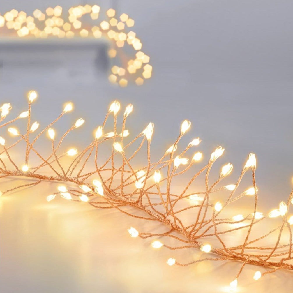 2.7 metres of lit length - 430 warm white LED Ultrabright light garland with rose gold wire.