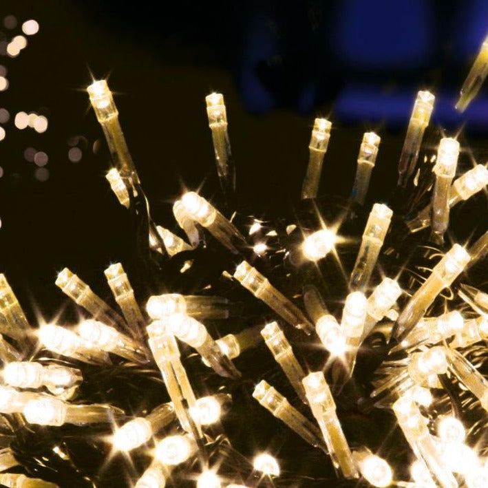 38.3 metres of lit length - 480 warm white LED cluster lights.