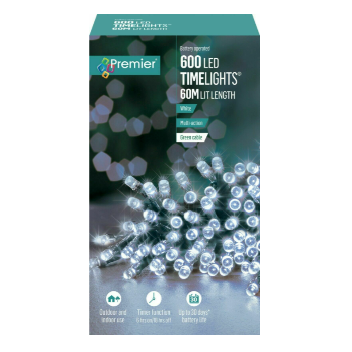 600 White LED Battery Operated Indoor & Outdoor Lights (60m)