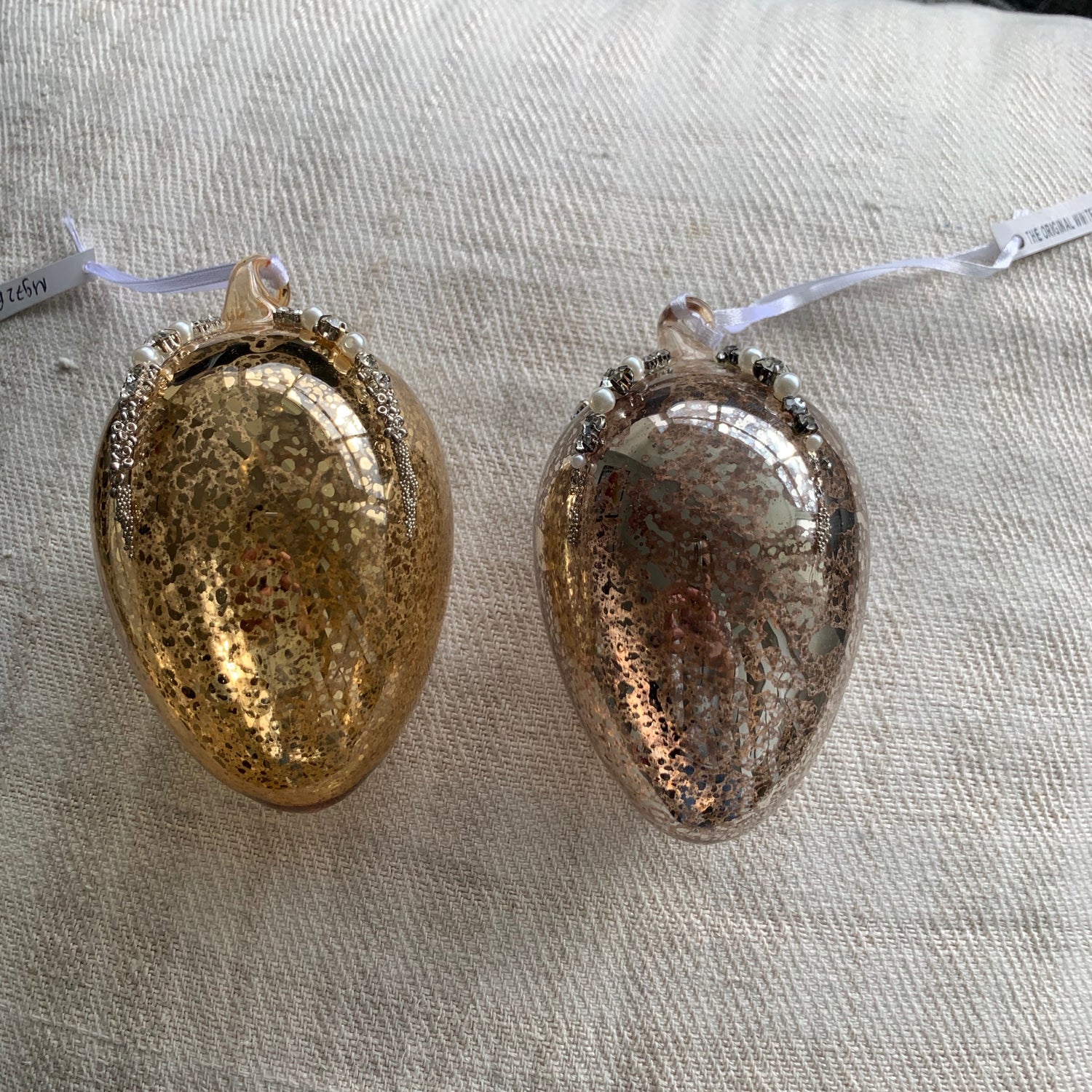 Antique Style Gold Shiny Glass Christmas Tree Decoration with Beads (10cm or 6cm Egg)