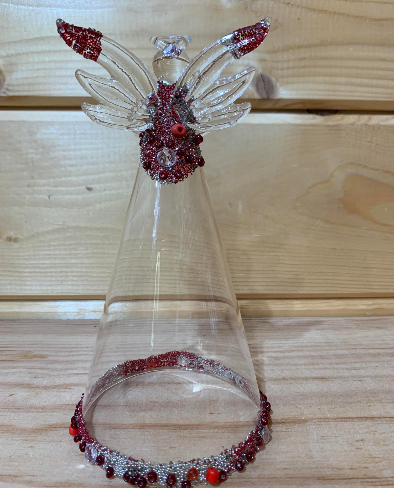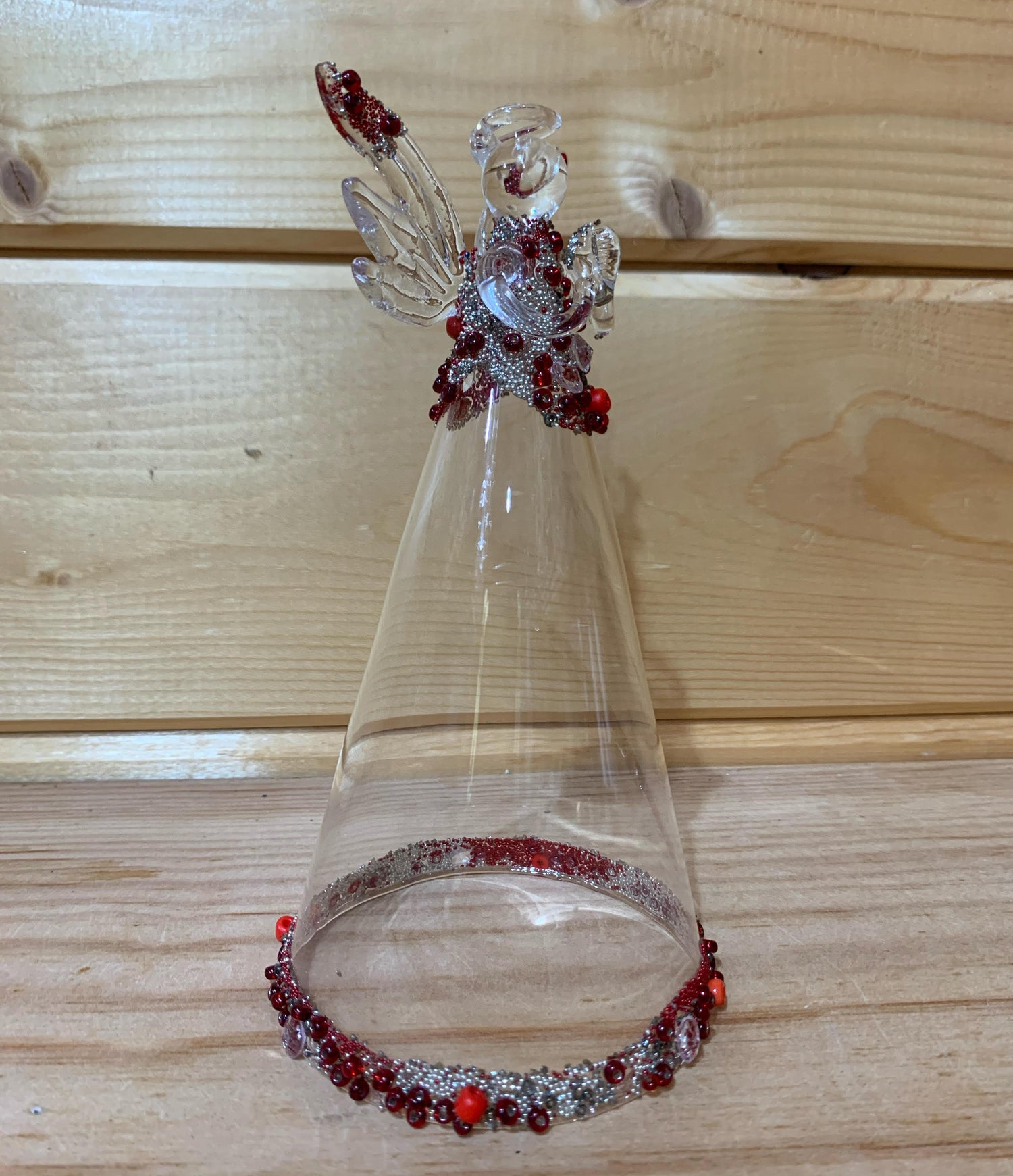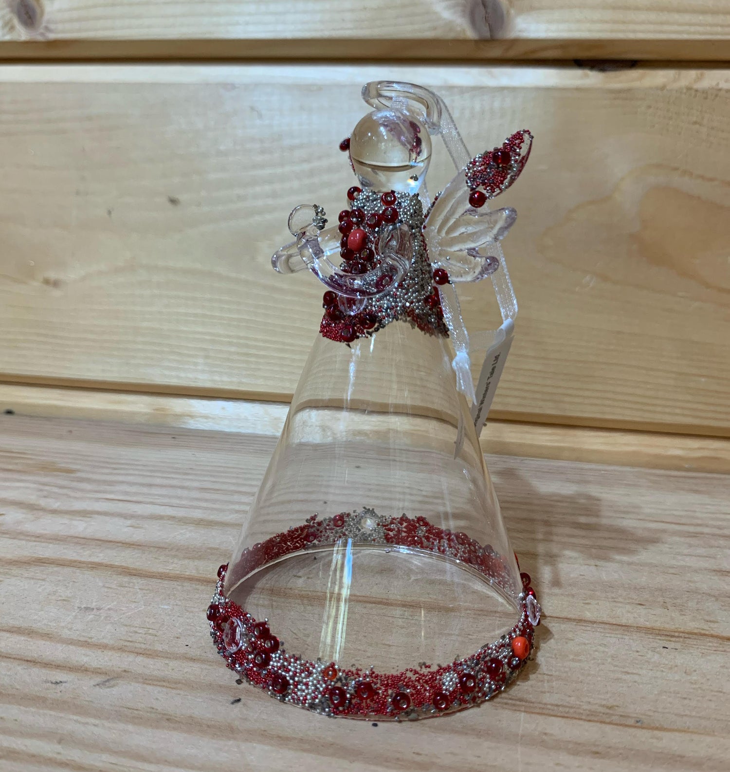 Clear Glass Angel with Red Silver Beading Christmas Tree Dec