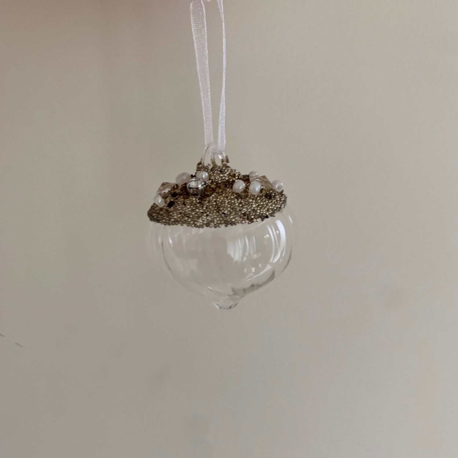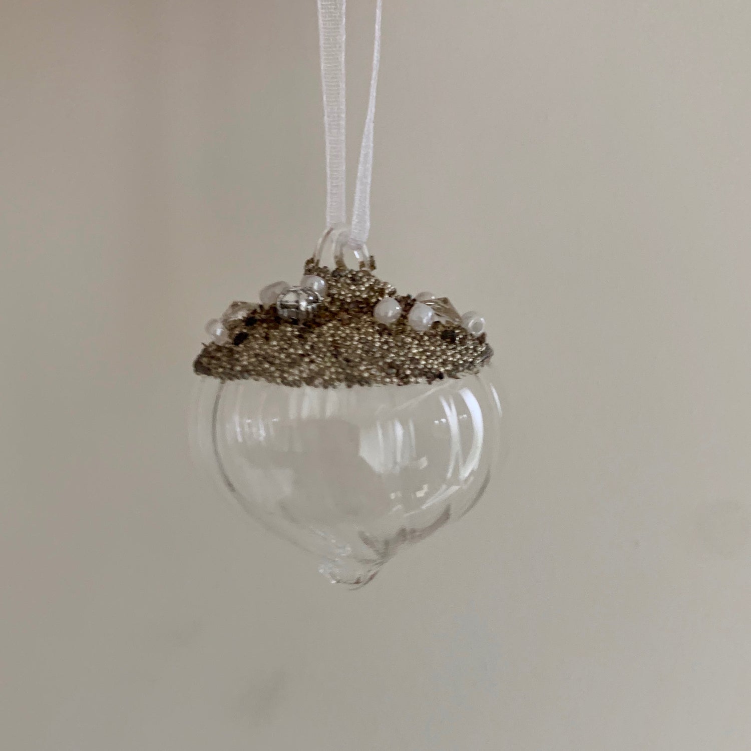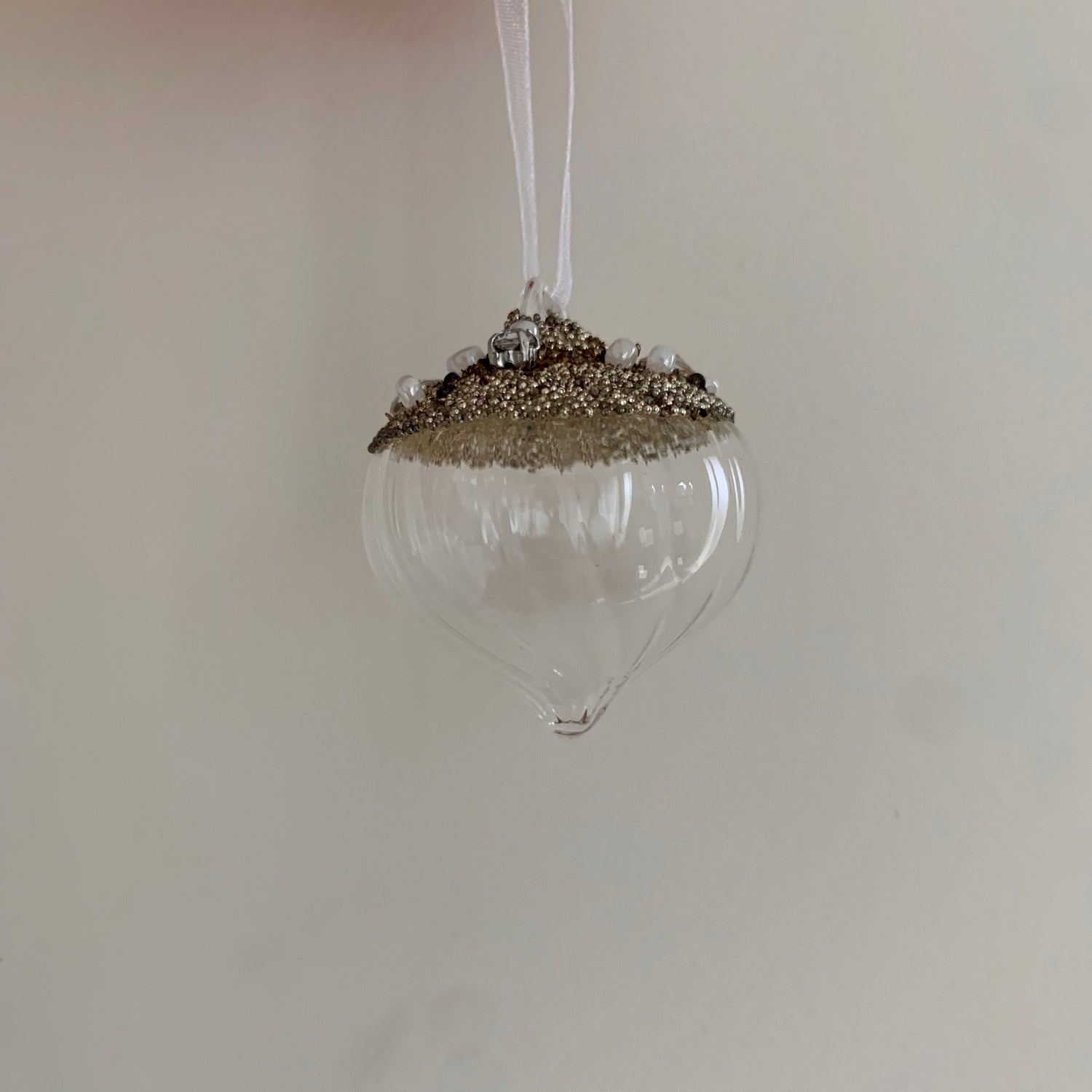 Clear Glass Ridged Pearl Beaded Christmas Tree Decoration (Sultan 4cm)