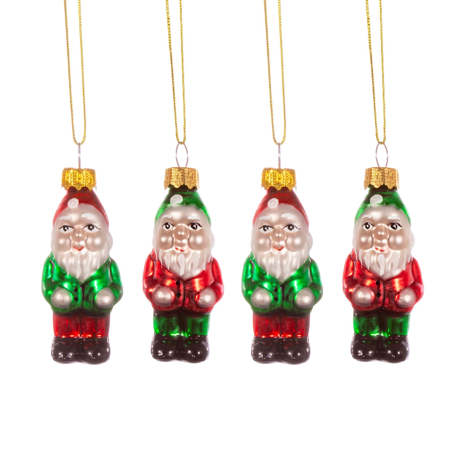 Garden Gnome Glass Christmas Tree Decorations (Set of 4)