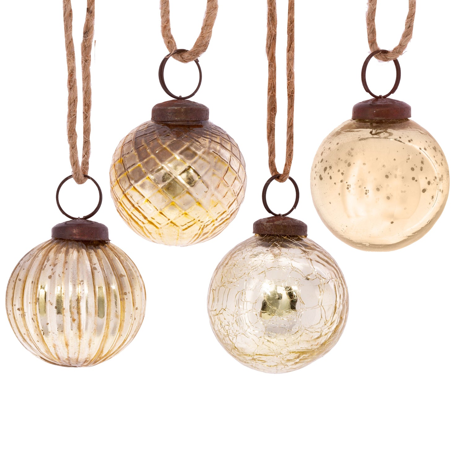 Gold Crackle Glass Christmas Tree Baubles (Set of 4)