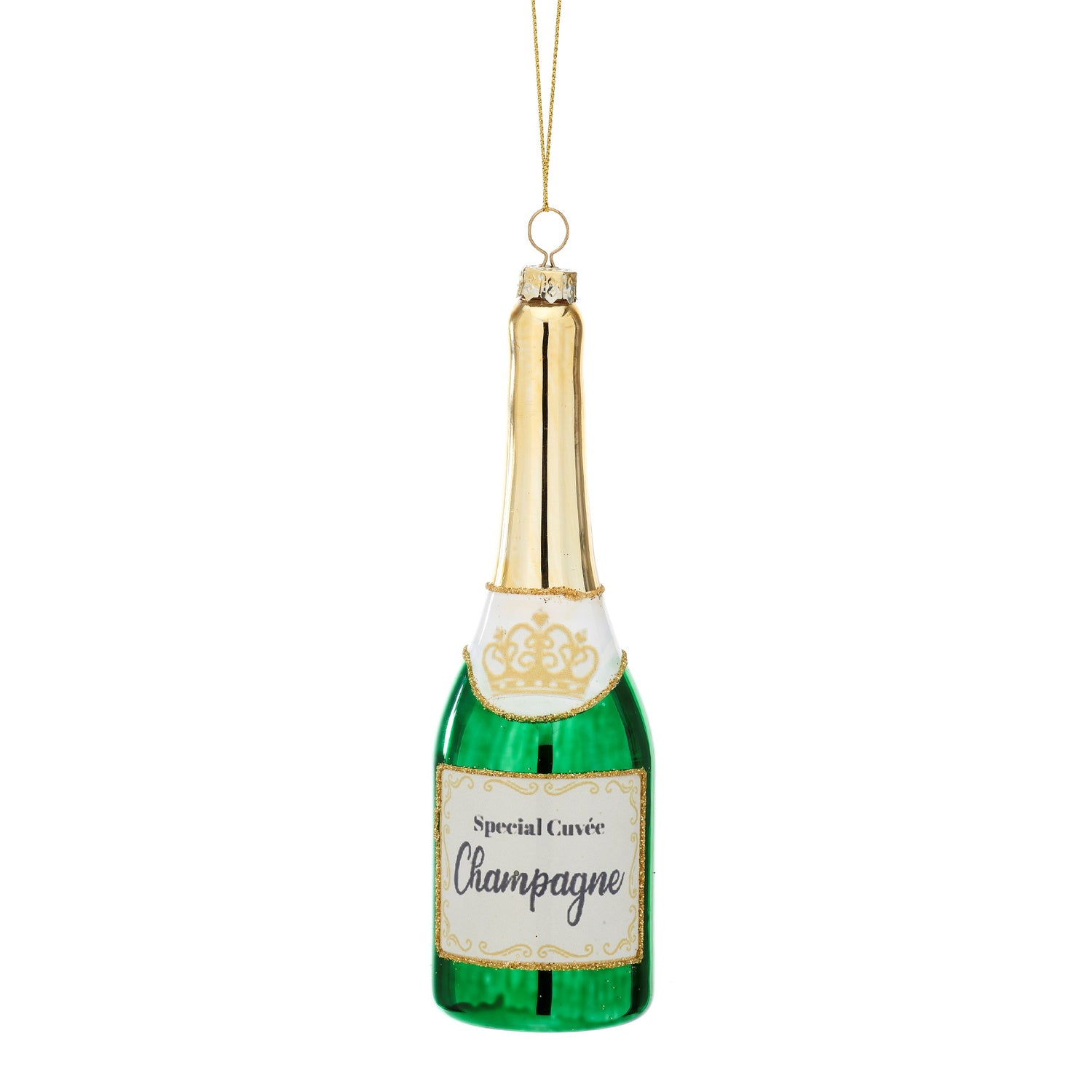 Get the party started with this opulent glass, gold and green luxe champagne bottle for your Christmas tree! Great office Secret Santa gift!