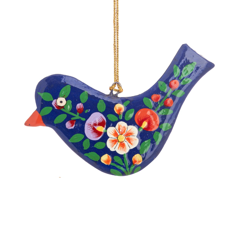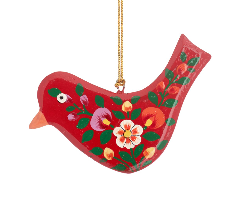 Absolutely stunning floral decorations in the shape of birds inspired by Kashmiri embroidery patterns from India. These beautiful hanging Christmas decorations, made from wood, will add a colourful touch to your tree.