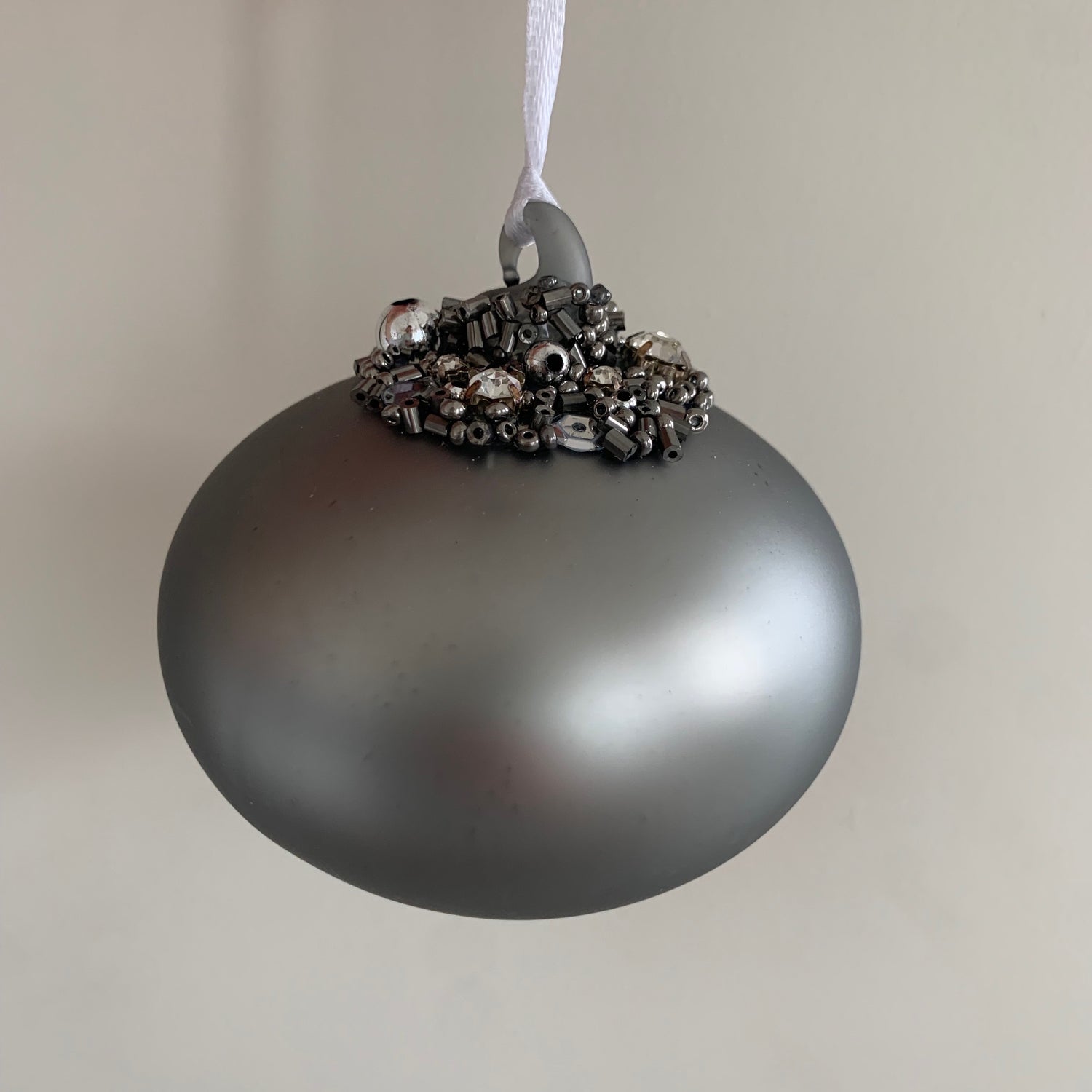 Matt Iron Coloured Glass Christmas Tree Decoration with Beading (Sultan 6cm)