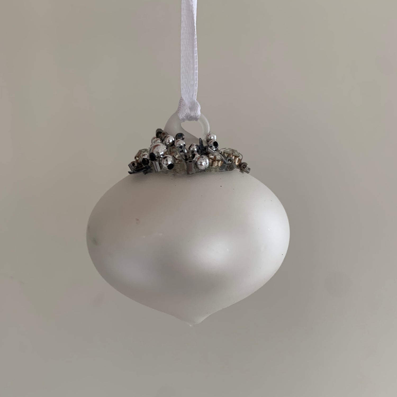 Matt Silver Glass Christmas Tree Decoration with Beading (Sultan 6cm)