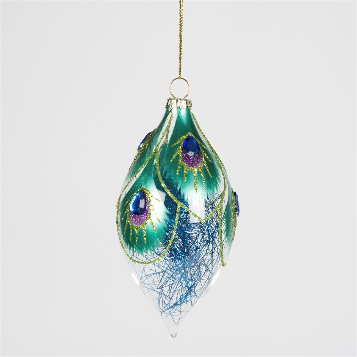Get the peacock and jewels look with this fabulous trio of Peacock Baubles with Blue Tinsel. The decoration comes in an assortment of three different shapes,