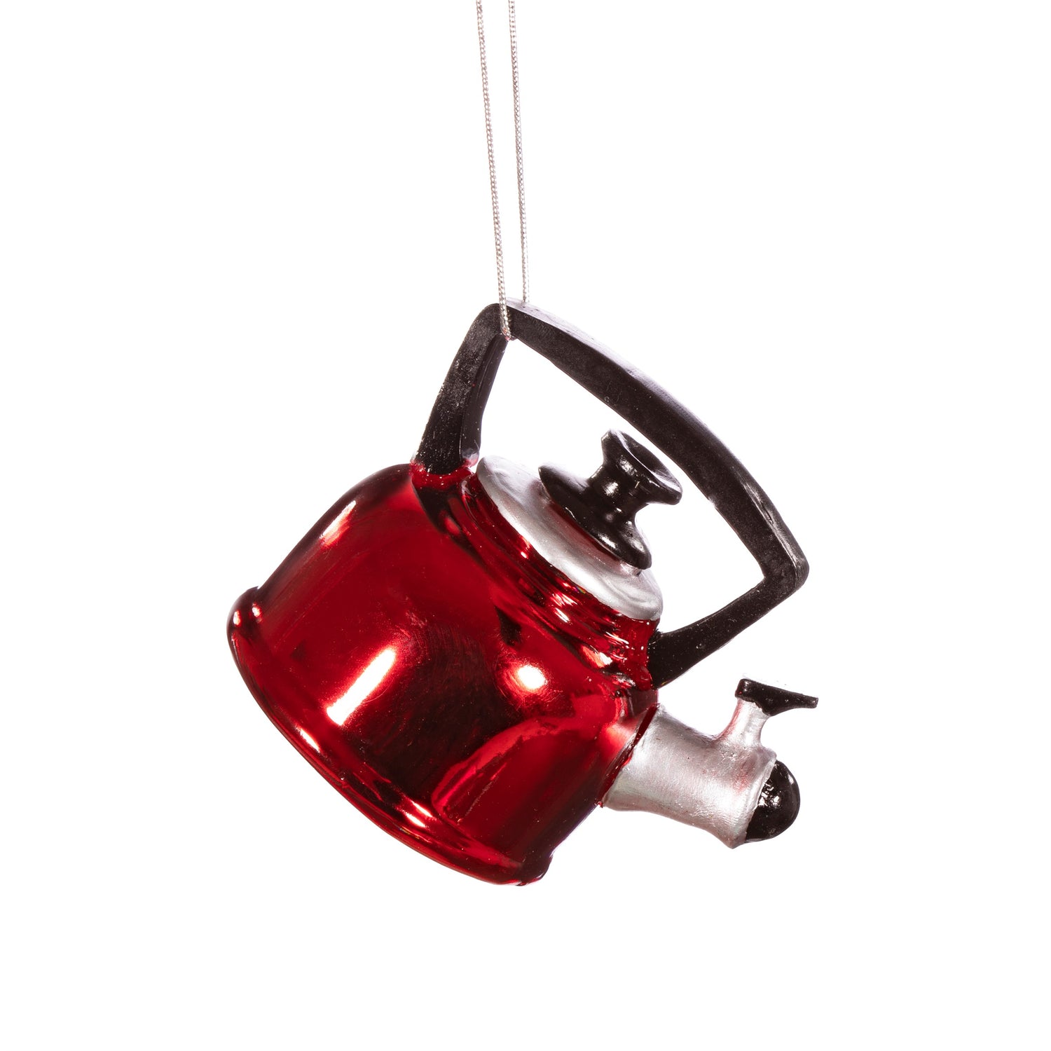 Red Camping Kettle Glass Christmas Tree Decoration