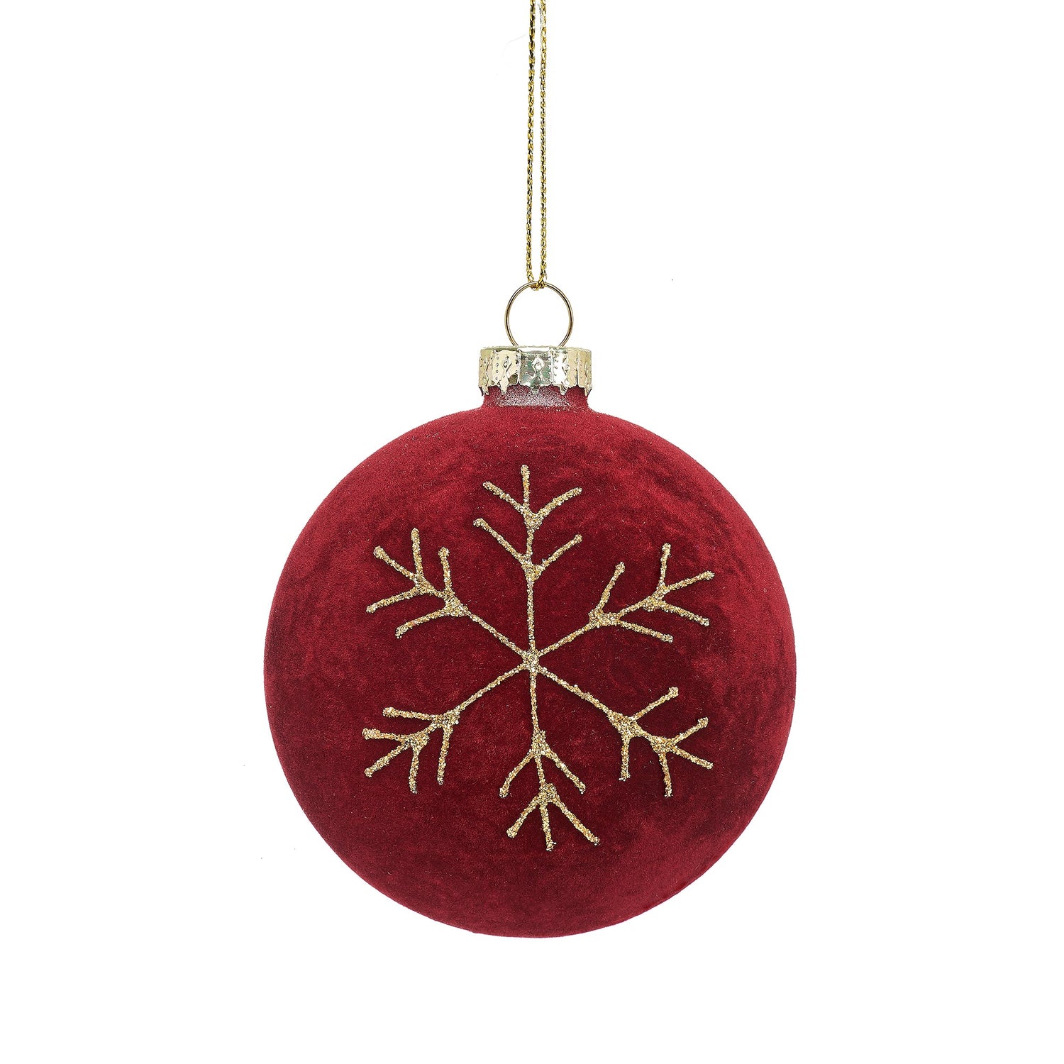 This gorgeous red flocked velvet glass Christmas bauble with a sparkling gold snowflake design, is truly glamorous, and will add more than just a touch of class to your Christmas tree!