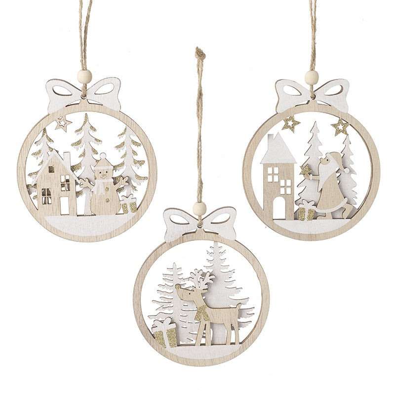 Rustic Wooden White Hanging Christmas Decorations (Set of 3)