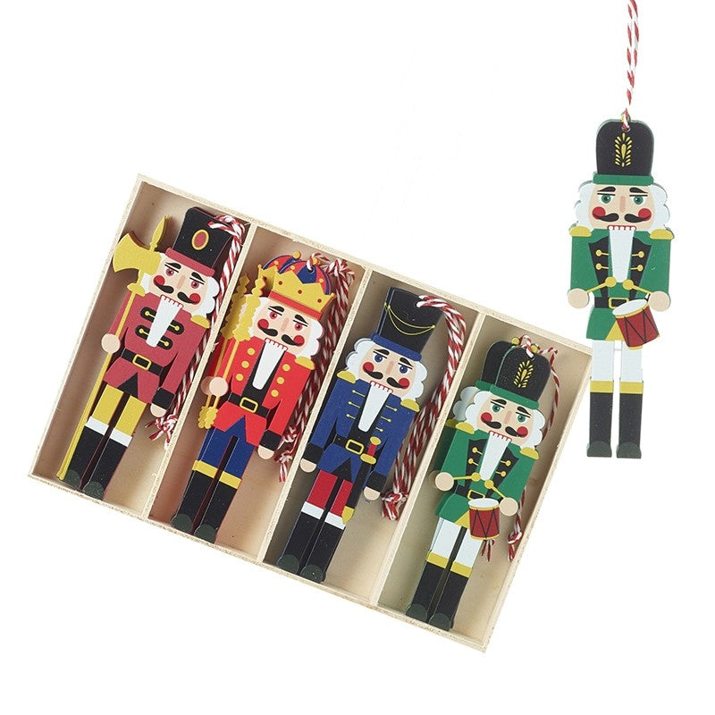 Set of 12 Nutcracker Soldier Wooden Christmas Tree Decorations