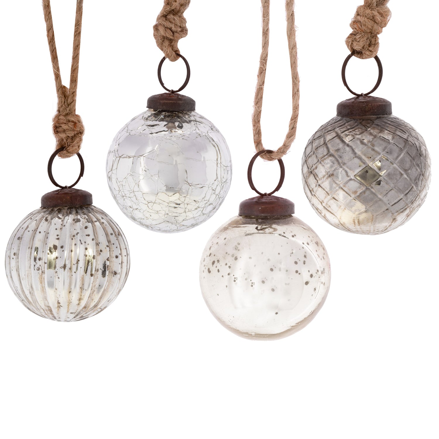Silver Crackle Glass Christmas Tree Baubles (Set of 4)