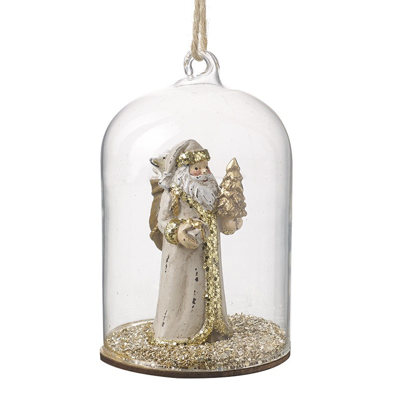 Traditional Santa in Glass Dome with Gold Glitter Christmas Tree Decoration