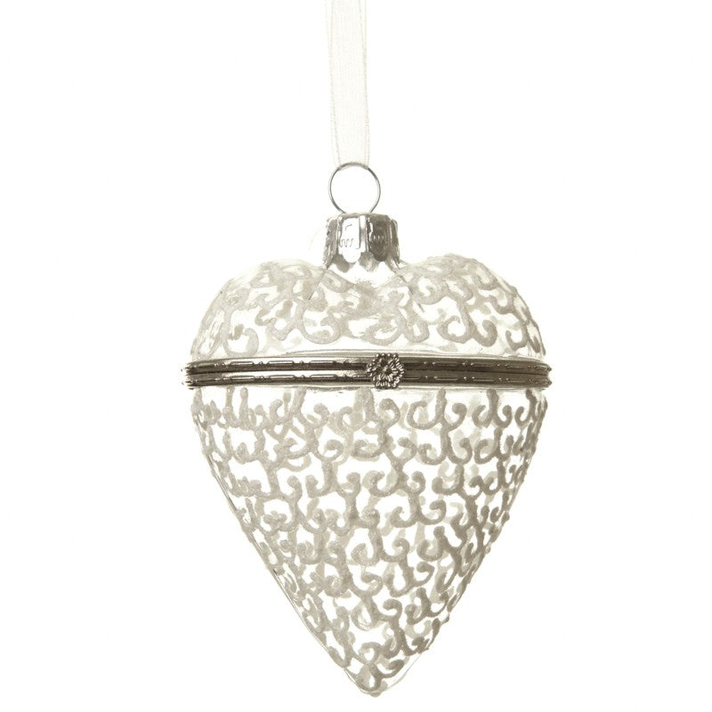 White & Silver Antique Style Heart Trinket Glass Christmas Tree Decoration