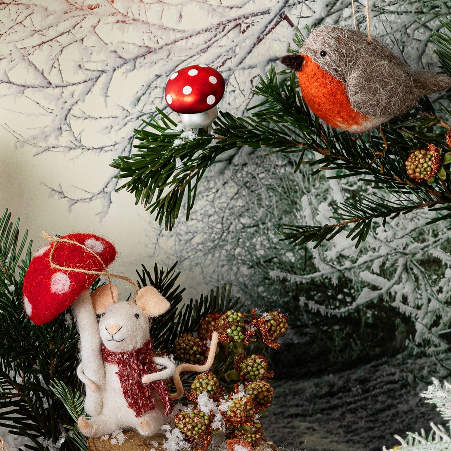 This very cute woodland white mouse wearing a scarf, and holding a mushroom Christmas decoration will definitely melt some hearts this festive season! How about creating a magical woodland theme this year?